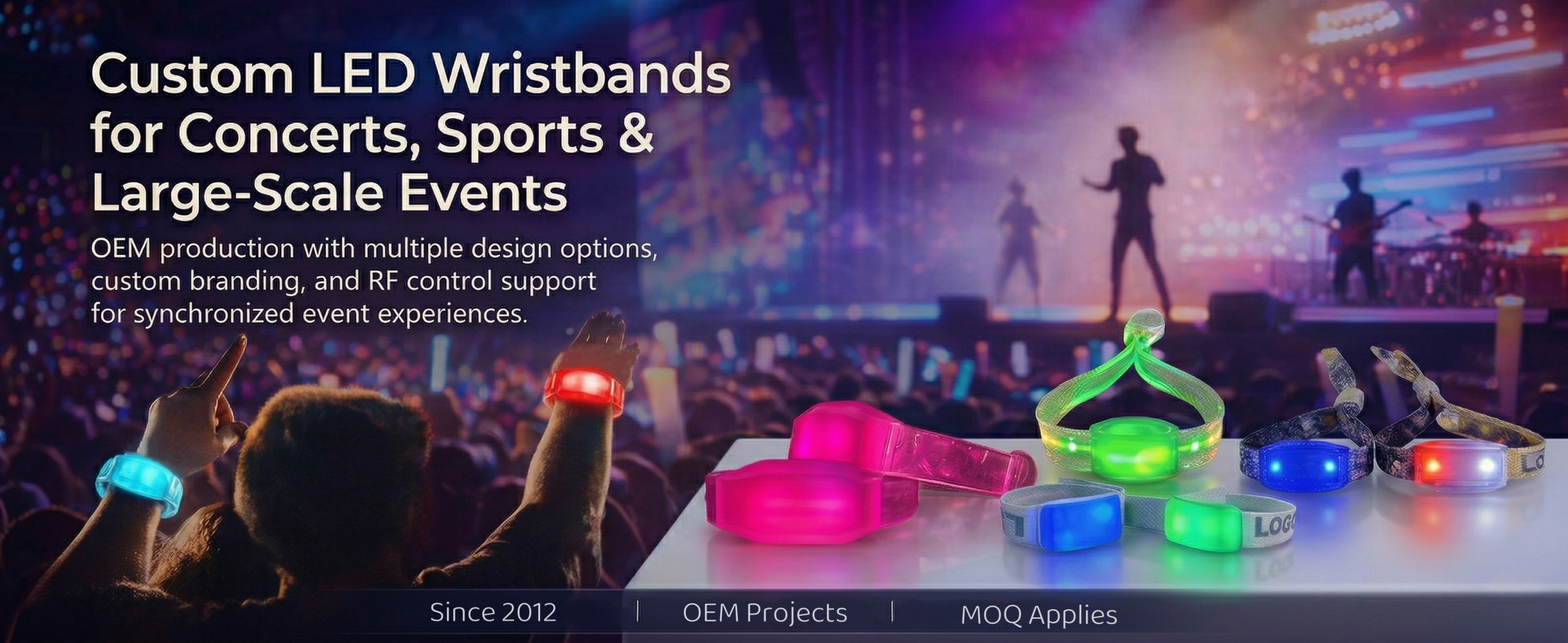 콘서트, 스포츠 이벤트, 팬 체험 행사 및 브랜드 프로모션에 적합한 다양한 손목 밴드 스타일을 살펴보세요. 조립 및 조명 테스트부터 대량 생산 준비 및 배송 처리까지, 실질적인 생산 과정을 통해 맞춤형 손목 밴드 프로젝트를 지원합니다.